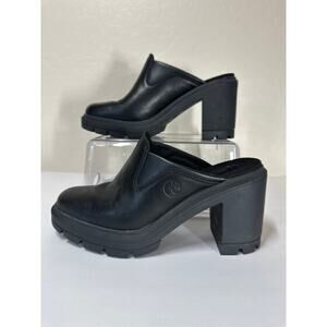 Timberland Allington Heights Clogs Block Heel Leather Black Slip On Size 9
