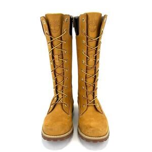 This tall version of the traditional Timberland boot features the classic lace up styling as well as the signature brand logo above the heel.