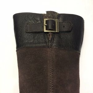EUC, excellent used condition. Almost like new. Shoes were not worn outside. Shoes were only worn to try on. Slight creasing from storage. Zippers function perfectly. Right boot has a tiny silver circular marking on the leather on the top of the foot as shown in last photo highlighted in blue box.