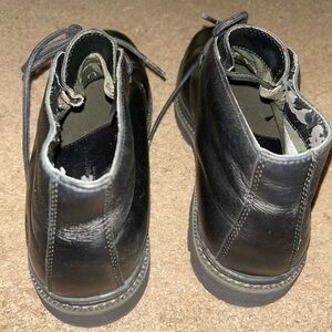 Crafted from smooth black leather, these Timberland chukka boots offer a sleek and minimalist design. Featuring a durable black rubber sole and metal eyelets, they are perfect for both casual and semi-formal occasions. Shoe has stripping to the interior see pics before purchasing