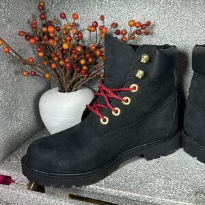 Timberland Black Leather Waterproof Buffalo Check Boots Size 6.5