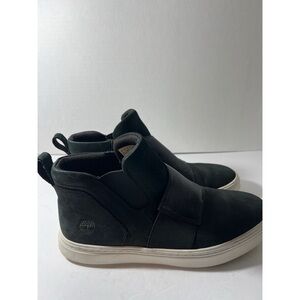 Experience the perfect blend of style and comfort with these Timberland black sneakers. Featuring a sleek, minimalist design with a smooth leather finish, these shoes are ideal for both casual and semi-formal occasions. The elastic side panels and contrasting rubber sole add a modern touch to this versatile footwear.