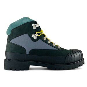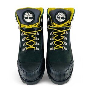 Stylish Timberland boots with a rugged design. Features black and gray color scheme. Durable and comfortable for outdoor adventures.
