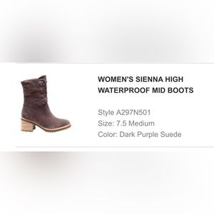 Timberland Woman’s Boot. Size 7.5. Dark Purple Suede. Waterproof. Worn once for pictures, in great condition.