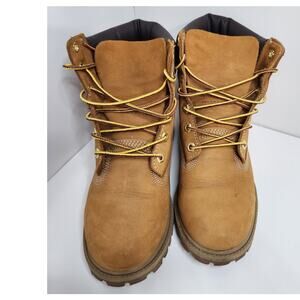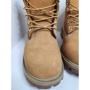 Get ready to step out in style with these classic Timberland boots! These men's size 6 boots are crafted from premium tan wheat nubuck leather, offering both durability and timeless appeal.