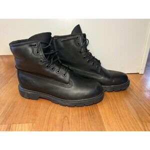 Timberland Boots Mens Size 7 Black Leather Lace Up Work Lug Sole Padded Collar