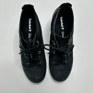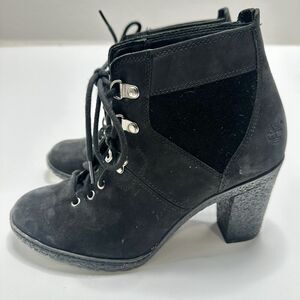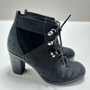 Timberland Boots Womens Size 8 Glancy High Heel Black Suede Leather Booties
