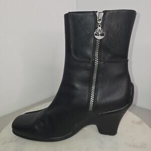 Timberland Boots Womens Size 9M Black Leather Ankle Heeled Zip Square Toe 98347