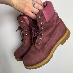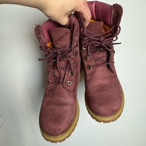 Timberland Bordeaux Red Boots with Leather upper Rubber soles Women’s 8