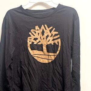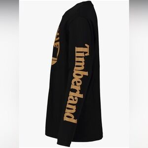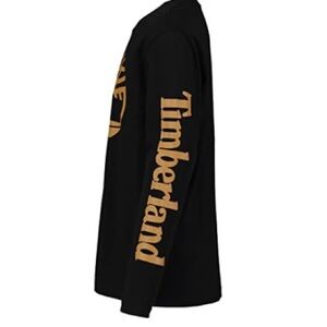 Make a bold statement in this long-sleeve T-shirt from Timberland, featuring tree logo motif and signature graphics down the sleeve.