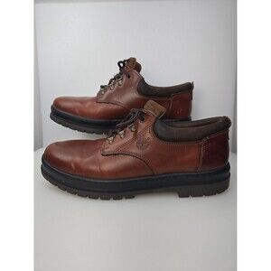 Timberland Brown Leather Shoe Boots Mens Sz 13 Side Logo Lug Sole Lace-Up
