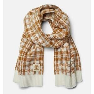 Timberland Buffalo Plaid Scarf Tan & Cream White Knit Acrylic New in package