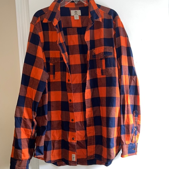 Blue and orange timberland Button Down shirt. Super soft and thick material.