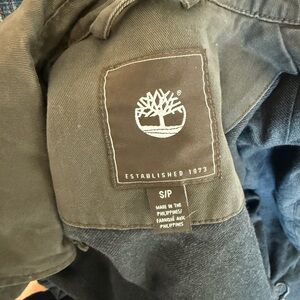 Timberland canvas utility jacket. My husband has worn it a handful of times! Nice lighter weight jacket option. Dark gray color.