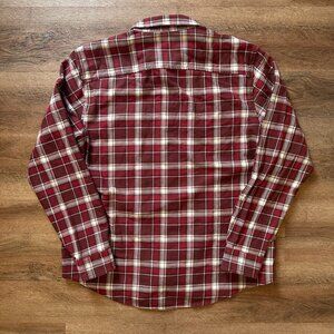 Timberland Casual Button Down Mens XL Red Maroon Plaid Rugged Flannel Shirt