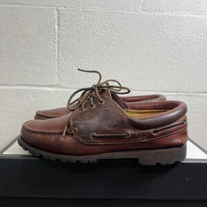 Timberland Classic Lug Boat Shoe Gore Tex Brown Leather 3 Eye Men's Size 8 US