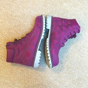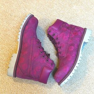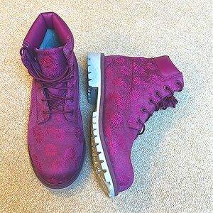 Timberland combat boots - unique, beautiful, & subtle floral print. Size 5.5.