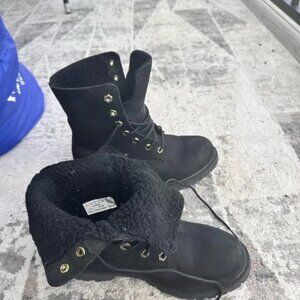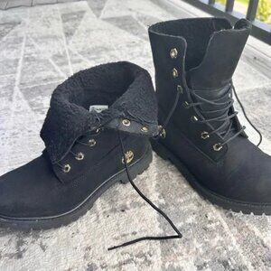 Timberland Combat Rollover Boots – Women’s 6.5, Black Leather, Winter-Ready