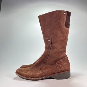 Timberland Comforia Brown Genuine Leather Boots Mid Calf Side Zip Womens Size 7M