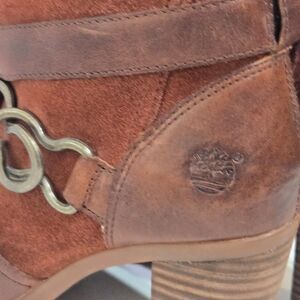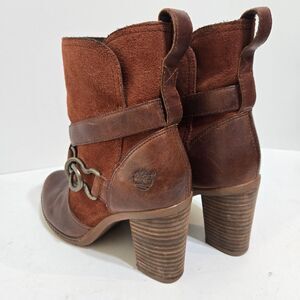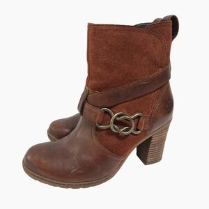 Timberland Dennett Boots 6.5 / 37.5 Brown Suede Leather Buckle Strap Heeled Moto
