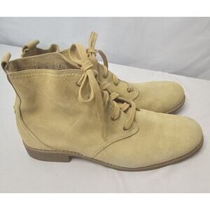 EXCELLENT Preowned TAN Suede Leather lace-up chukka boots by Timberland. Ladies in Size 9.5 These chukka boots have crepe soles, block heels, rounded toes stacked leather heels, and soft