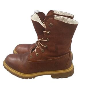 Timberland Earthkeepers Authentic Teddy Fleece Leather Brown Boots, women's 7