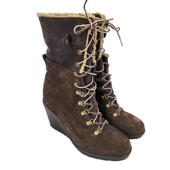 Timberland Earthkeepers Shearling Fold Down Lace Up Wedge Boots Size 9