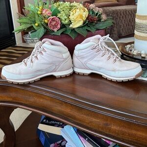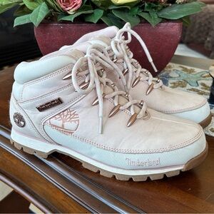 Timberland Euro Hiker Sprint Mid Light Pink Nubuck Leather Women's Boots Lace Up.