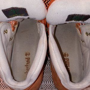 Full grain Leather, Golden Wheat with white accents. Needs replacement laces. Gently worn.