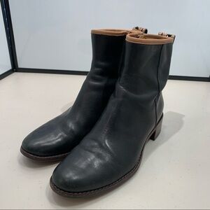 Timberland Flora Black Leather Stacked Heel Floral Laser Cutout Bootie Sz 6.5