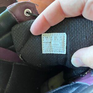 Timberland Girls Tall Purple and Black Leather Lace Up Boots- Size 5. Very little wear, only a minor mark here and there. See pics for reference. Missing 1 in-sole, easily replaceable. Otherwise in great condition.