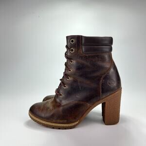 Timberland Glancy 6 Chocolate Brown Leather Ankle Heel Boots Shoe Women's Size 7
