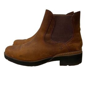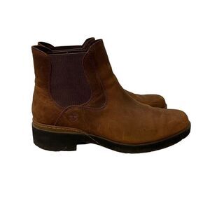 Timberland Graceyn Womens Size 10 Brown Leather Block Heel Pull On Ankle Boots