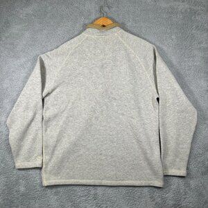 Cozy gray sweater with half-zip design. Timberland logo on chest. Perfect for casual wear.