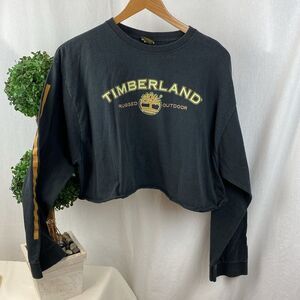 Timberland Gray Logo Print Long Sleeve Oversize Cropped Hoody Sweatshirt Top XXL