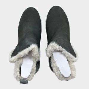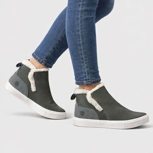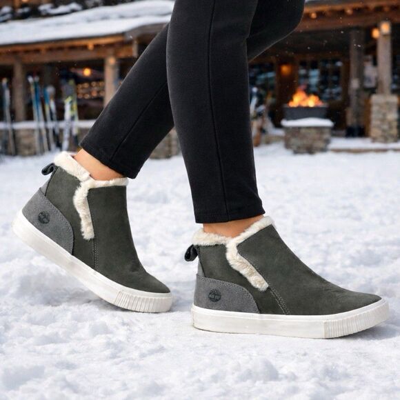 Timberland Grey Nubuck Leather Slip On Sneaker Boot Womens 7 Faux Fur