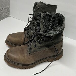 Timberland Harris Tweed Women's Fold Down Leather Boots Size 6.5 Gray Teddy
