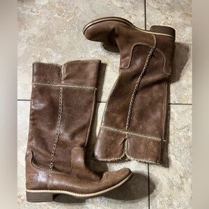 Stylish brown leather tall boots with detailed stitching. In great condition. Light wear on the toes. Sole have not wear. Size:7.5