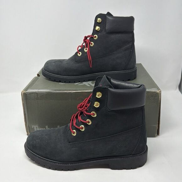Timberland Heritage 6” Waterproof Boots Women’s 10 Black Nubuck Red STORE MODEL