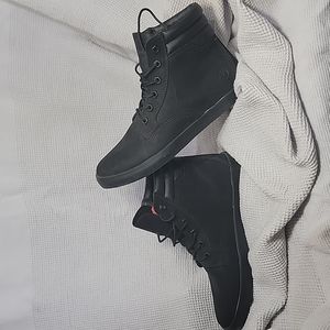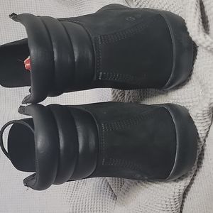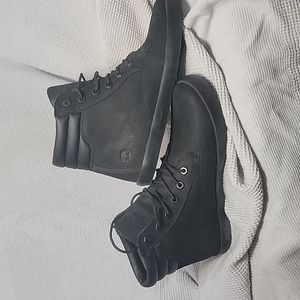 Timberland combines thier popular full grain leather biker boot w a vans hitop style for a slimmer w sleeker more modern silhouette NWOT WSz9. ....stitching, inner logo, hardware, laces all100% intact. No damage, no stain / odor. ortholite insoles.