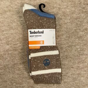 Timberland Ivory Speck BrownβBlue W6.5-9.5 Super Soft Knit Boot Socks Pack of 2