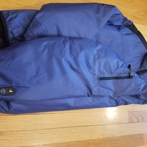 This men's puffer jacket is made in a nylon blend with a water-repellent finish. Designed to take on winter cold, this jacket features zipper pockets. Zip up pocket on the arm. Size XL