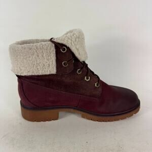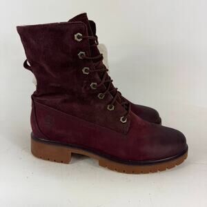 Timberland Jayne Fleece Boots 7.5 Burgundy Leather Round Toe Lace-up Mid-Calf