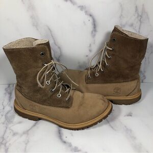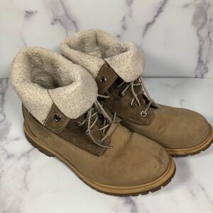 Timberland Jayne Teddy Lace Up, Fold-Down, Boots Light Brown, Size 7.5