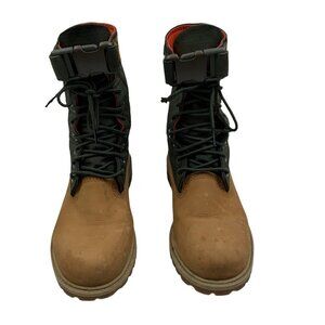 Timberland Junior Mixed-Media Gaiter Boots Special Release/Limited Edition Size 4(Big Kids). In gently used condition, some spotting on tan leather and inner orange lining (please see pictures), soles are in very good condition.