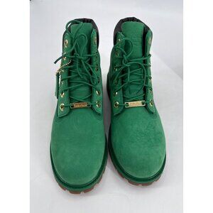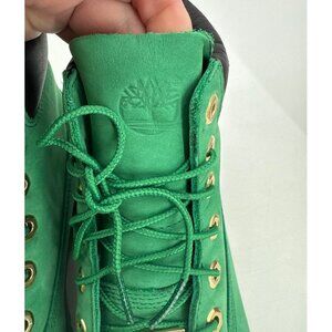 These Timberland boots offer a stylish design with durable construction. Green leather and gold-tone details provide a fresh look for versatile wear.