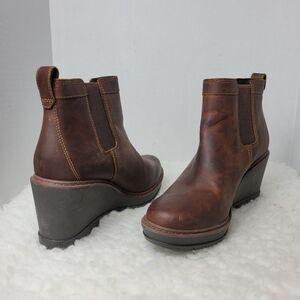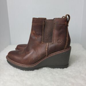 Timberland Kellis Womens Wedge Chelsea Boots Brown Leather Pull On 3" Shoes Great Condition See Pictures For More Details.