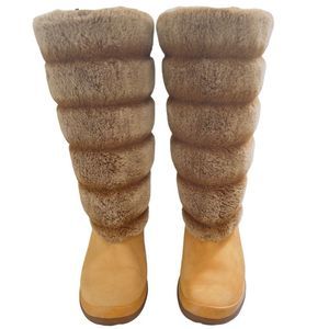 Timberland Kickadila Wheat Nubuck Leather & Faux Fur Tall Boots — SZ 9 EUC