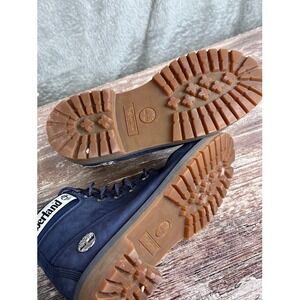 Keywords: Timberland, kids boots, ankle boots, navy blue, leather boots, lace up boots, waterproof, kids footwear, children's boots, booties, outdoor boots, padded collar, timberland logo, size 4