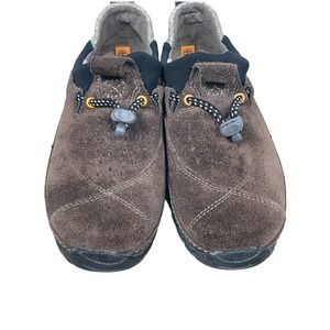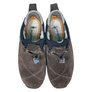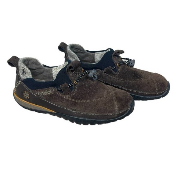 Stylish Timberland kids sneakers. Brown suede with black accents. Comfortable and durable design.